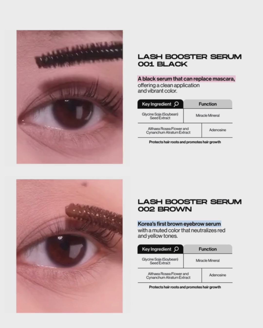 Lash Booster Serum #Brown, Korea's first brown eyebrow serum with a muted colour that neutralises red and yellow tones.Protects hair roots and promotes hair growth.