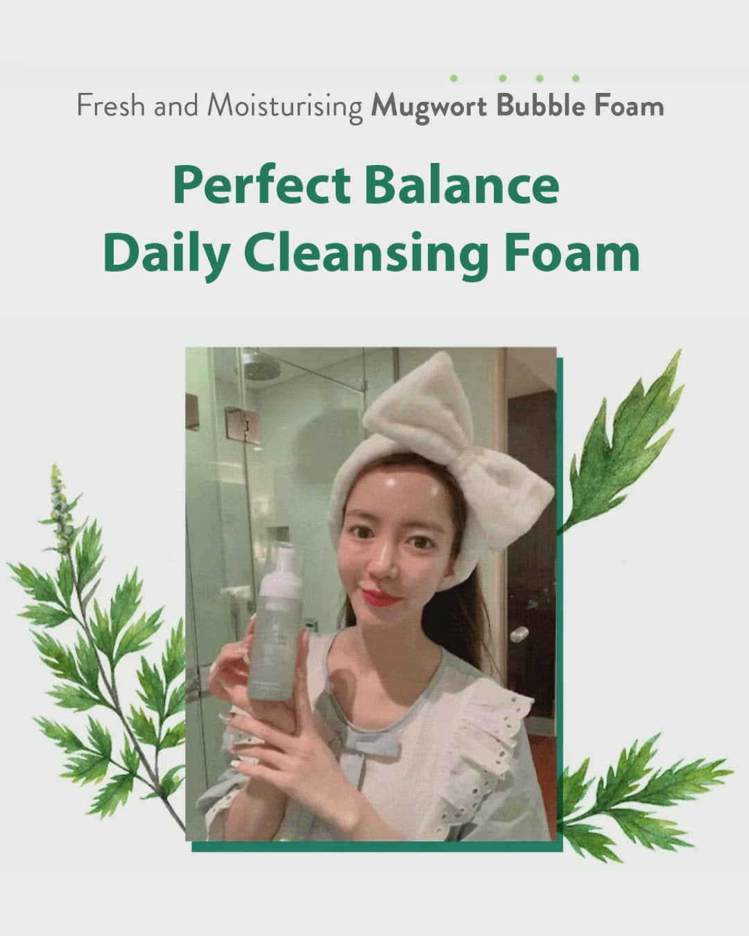 - Korean grown Mugwort is extracted with the old traditional Gujunggupo method (steam and sun-dry nine times) and formulated in the cleansing foam.