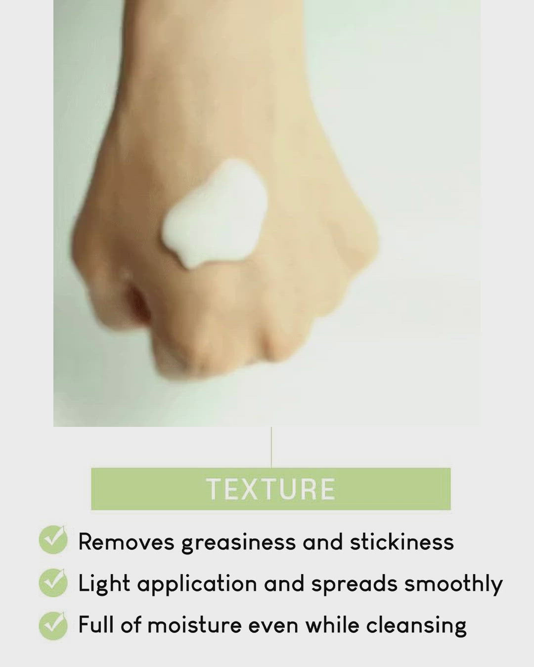 A light, milk lotion textured cleanser that removes makeup and provides moisture. It contains Mugwort Extract and 97% moisturising natural ingredients (like Job's Tears Seeds, Mung Bean Extract, Oregano Leaf Extract and more) to perform various roles for the skin such as Skin Moisturising, Soothing, Pore Reduction, Brightening, Skin Barrier Protection, etc.