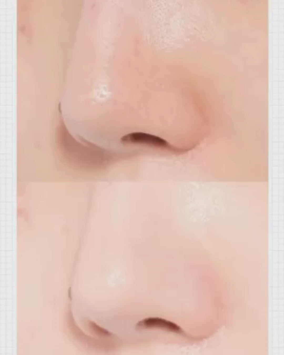 The bio-cellulose sheet consisting of more than 95% water gently attaches to skin and soaks hardened sebum to soften it